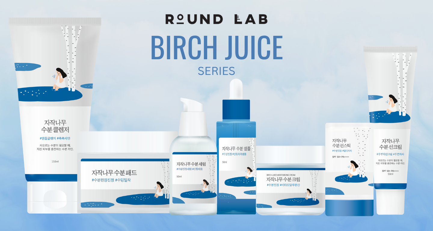 The Birch Juice Series focuses on deep hydration and skin barrier repair, featuring birch sap from Inje, Korea.